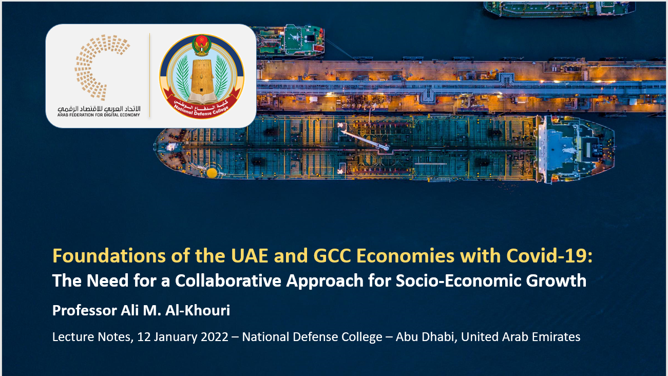 أسس اقتصادات دولة الإمارات العربية المتحدة ودول مجلس التعاون الخليجي في ظل جائحة كوفيد-19: الحاجة إلى نهج تعاوني لتحقيق النمو الاجتماعي والاقتصادي -ا.د.علي محمد الخوري ملاحظات المحاضرة، 12 يناير 2022 – كلية الدفاع الوطني – أبوظبي، الإمارات العربية المتحدة