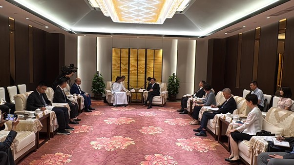 عقد الاتحاد العربي للاقتصاد الرقمي اجتماعاً رفيع المستوى مع معالي فنغ في، حاكم مقاطعة هاينان الصينية، وعدد من كبار المسؤولين الحكوميين والمؤسسات الاقتصادية والتكنولوجية في المقاطعة، جرى خلاله الاتفاق على حزمة من محاور التعاون الاستراتيجي. وشارك في الاجتماع ممثلون عن إدارات حكومية رئيسية، منها إدارة الصناعة وتكنولوجيا المعلومات، وإدارة البيانات الضخمة، ومكتب معلومات الإنترنت، إضافة إلى مسؤولين حكوميين من القطاعات المختلفة.