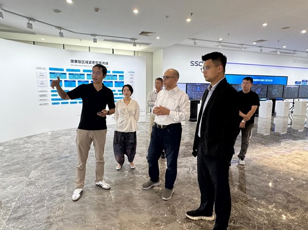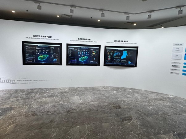كما زار الوفد قاعة المعرض الرقمي للطب والصحة (Digital Medical & Health Exhibition Hall) التابعة لـ منصة الخدمات الذكية (SSC – Smart Service Cluster)، وهي منصة معنية بتطوير تطبيقات التكنولوجيا الرقمية في القطاع الصحي وبناء بنية تحتية موثوقة للبيانات الطبية. وقد اعتُمدت المنصة في عام 2022 كمبادرة وطنية في مجال الصحة الرقمية من قبل اللجنة الوطنية للصحة في الصين وعدد من الجهات الحكومية، ويعتمد المعرض على تقنيات متقدمة تشمل البلوك تشين، والحوسبة السحابية، وإنترنت الأشياء، لتوفير منصة تعاونية تربط الموارد الصحية على المستويين المحلي والدولي.