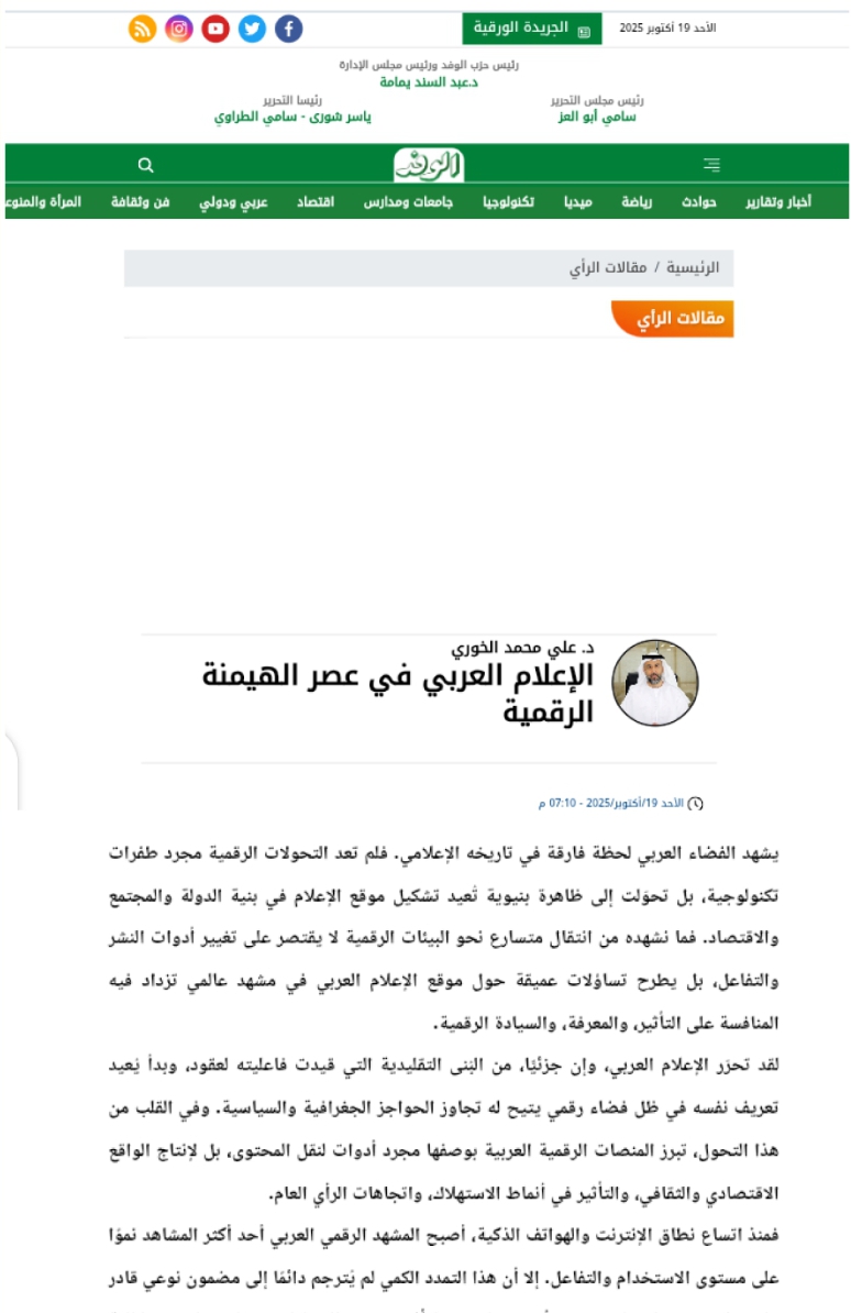 لقد تحرّر الإعلام العربي، وإن جزئيًّا، من البُنى التقليدية التي قيدت فاعليته لعقود، وبدأ يُعيد تعريف نفسه في ظل فضاء رقمي يتيح له تجاوز الحواجز الجغرافية والسياسية. وفي القلب من هذا التحول، تبرز المنصات الرقمية العربية بوصفها مجرد أدوات لنقل المحتوى، بل لإنتاج الواقع الاقتصادي والثقافي، والتأثير في أنماط الاستهلاك، واتجاهات الرأي العام.