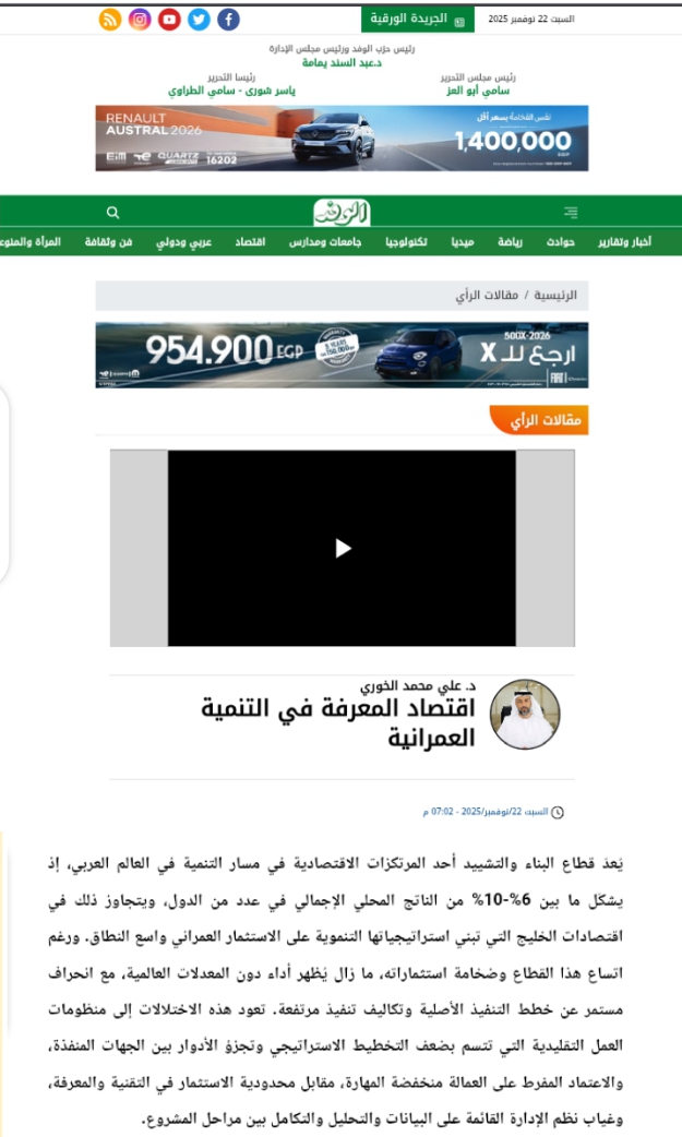 يُعدّ قطاع البناء والتشييد أحد المرتكزات الاقتصادية في مسار التنمية في العالم العربي، إذ يشكّل ما بين 6%-10% من الناتج المحلي الإجمالي في عدد من الدول، ويتجاوز ذلك في اقتصادات الخليج التي تبني استراتيجياتها التنموية على الاستثمار العمراني واسع النطاق. ورغم اتساع هذا القطاع وضخامة استثماراته، ما زال يُظهر أداء دون المعدلات العالمية، مع انحراف مستمر عن خطط التنفيذ الأصلية وتكاليف تنفيذ مرتفعة. تعود هذه الاختلالات إلى منظومات العمل التقليدية التي تتسم بضعف التخطيط الاستراتيجي وتجزؤ الأدوار بين الجهات المنفذة، والاعتماد المفرط على العمالة منخفضة المهارة، مقابل محدودية الاستثمار في التقنية والمعرفة، وغياب نظم الإدارة القائمة على البيانات والتحليل والتكامل بين مراحل المشروع.
