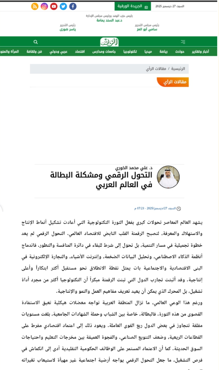 التحدي الحقيقي لا يكمن في وتيرة الرقمنة أو في سباق اللحاق بها، بل في الكيفية التي تُوظف بها لخدمة المجتمعات وحماية أمنها الاقتصادي والاجتماعي، لأن التحول الرقمي إن لم يشمل المجتمع ككل يتحول إلى مشروع منعزل بلا مضمون تنموي.
