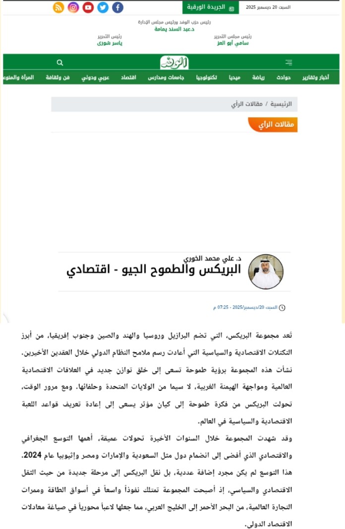 وفي أفق أكثر تأملاً، يمكن القول إن مستقبل البريكس سيعتمد على قدرتها على تجاوز خلافاتها الداخلية وصياغة رؤية مشتركة للعولمة الجديدة. فالعالم يقف اليوم عند مفترق طرق تاريخي، فمفهوم القوة اليوم يتجاوز الحدود الاقتصادية والعسكرية ليتمحور حول امتلاك الدول القدرة على نسج تحالفات استراتيجية مستقرة تقوم على الثقة والمصالح المتقاطعة. إذا ما نجحت البريكس في تحقيق هذا التحول، فقد لا تكون مجرد تكتل اقتصادي، بل بداية حقبة جديدة من إعادة تشكيل النظام العالمي على أسس أكثر توازناً وإنصافاً. أما إذا فشلت، فسيبقى العالم يدور في فلك القوى التقليدية ذاتها، ينتظر من جديد من يجرؤ على إعادة تعريف المستقبل.